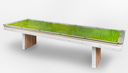 Materiali: corpo in cartone e legno laccato bianco, piano in vetro temperato e composizione licheni;