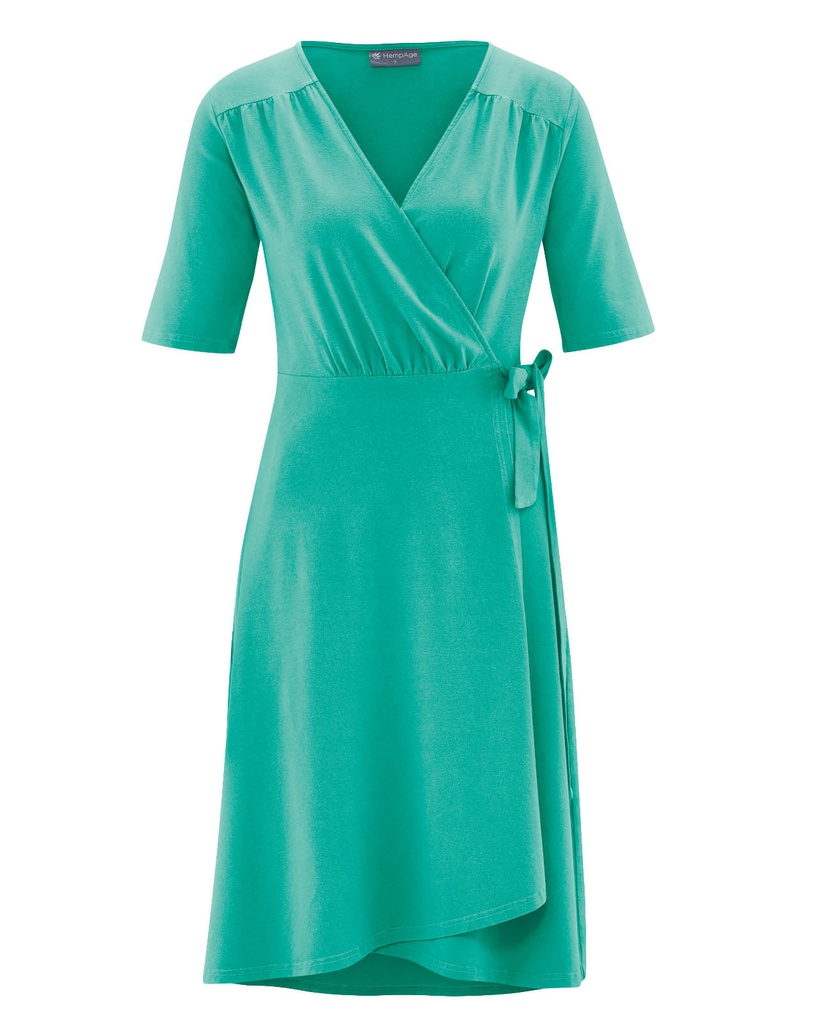 abito avvolgente slim fit, jersey elastico, aspetto asimmetrico, elastico in vita, sulla spalla, vegano