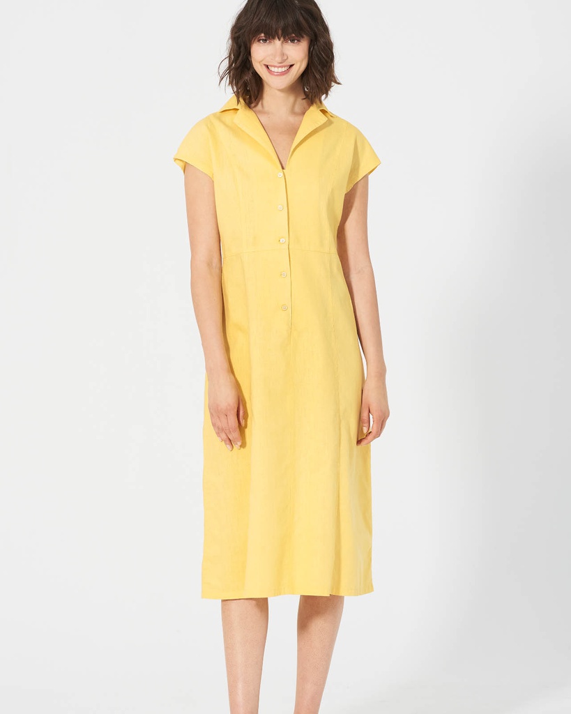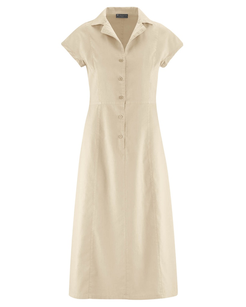 Abito abbottonato con collo a revers, trend e sostenibilità , pensato per tutte le occasioni lo indossi in modo sportivo o casual.