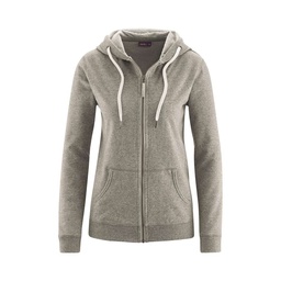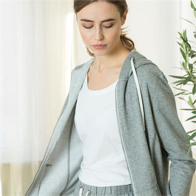 Collezione Sfumature femminili di Living CraftLa felpa Wellness da donna, avvolgente e traspirante in jersey di puro cotone biologico - con cappuccio, interno a righe a contrasto, cerniera a tutta lunghezza, semplice e pratica tasca a marsupio. > Composizione: 100% cotone Biologico, Jersey