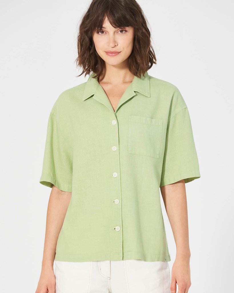 La camicetta urbana a mezza manica assicura combinazioni di outfit estivi chic. Trendy con bermuda plissé o sportivo con semplici jeans a vita alta, qui comfort e classe segnano punti.
