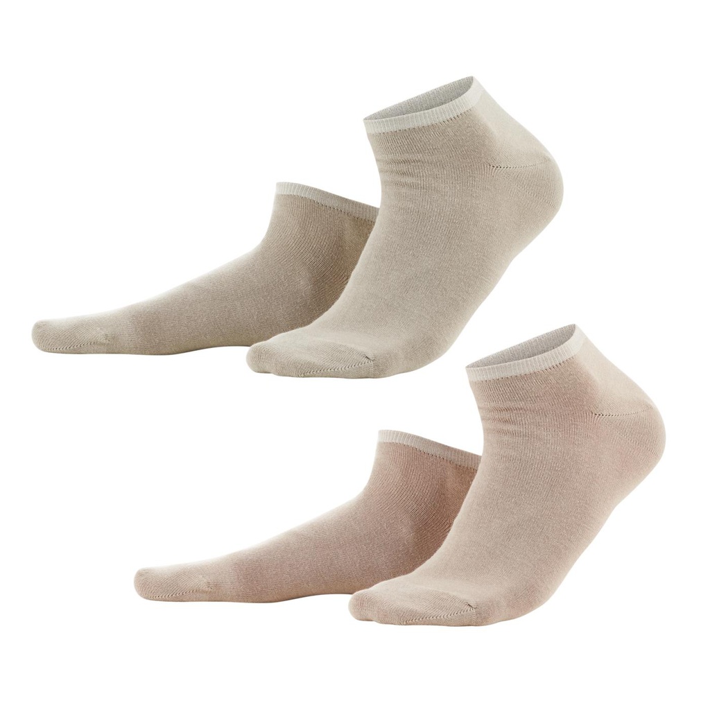 Calze per sneaker per lui e per lei: comode, versatili e ad un prezzo speciale in un pacchetto di 2 pezzi! Lavorazione a maglia attraverso l'uso di cotone biologico per la pelle e una raffinata miscela di Elastan rivestito in cotone. Con bordi a costine morbidi che non stringono. Composizione: 98% cotone biologico, 2% elasthan