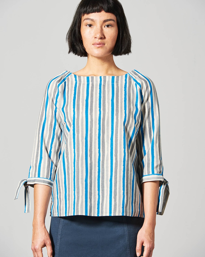 Camicetta a mezza manica a righe canapa e Cotone biologico