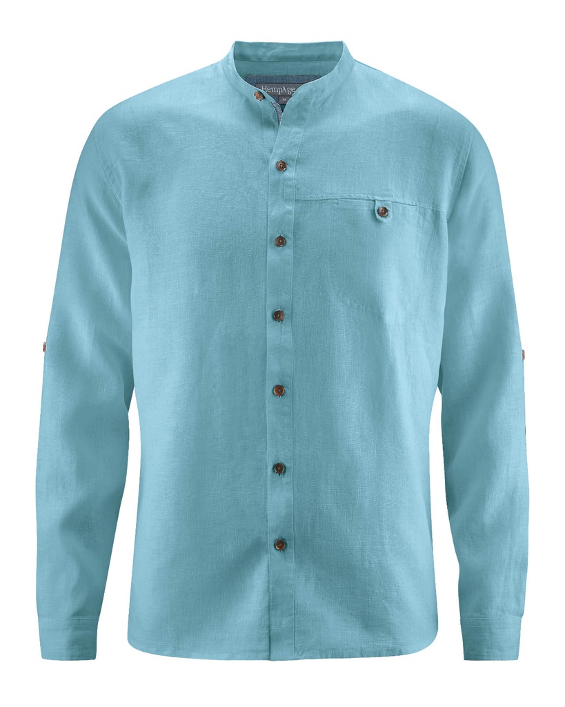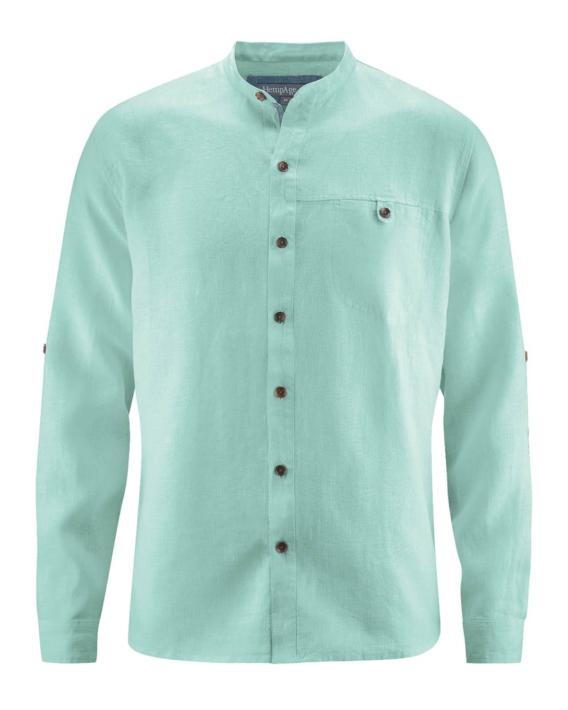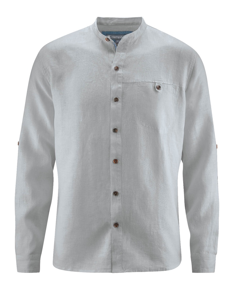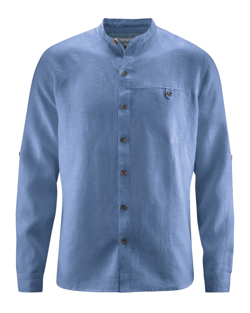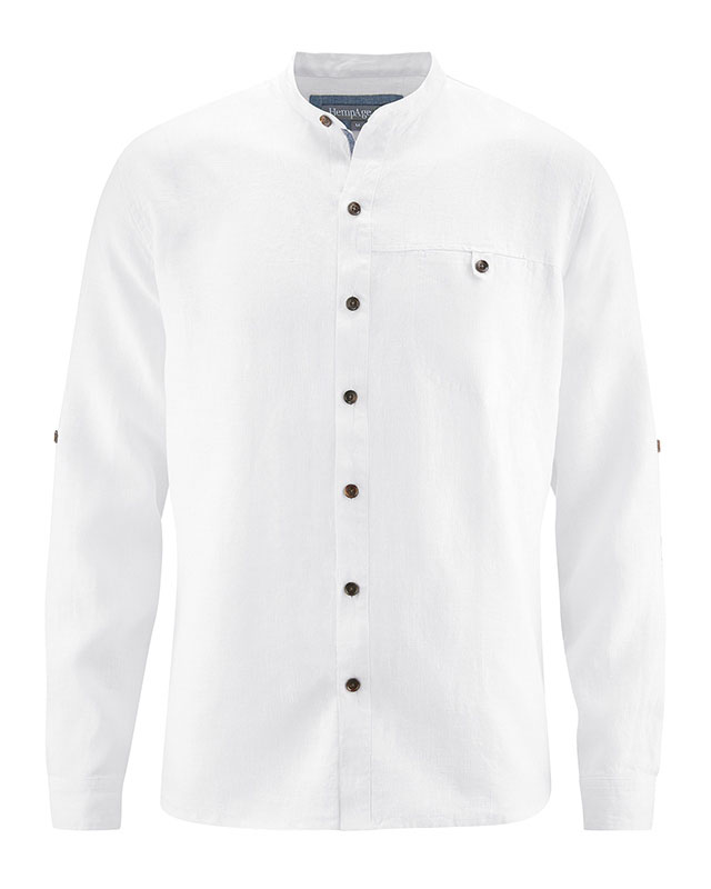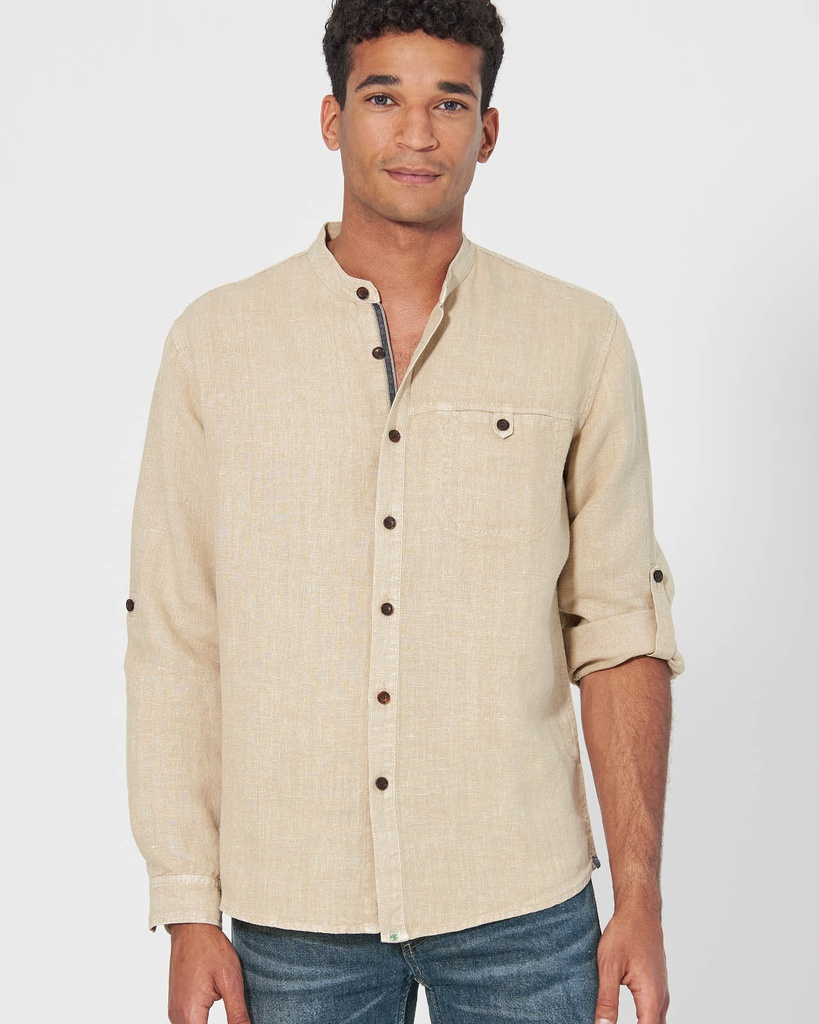 Camicia manica lunga con taschino laterale con bottoncino, colletto alla coreana
