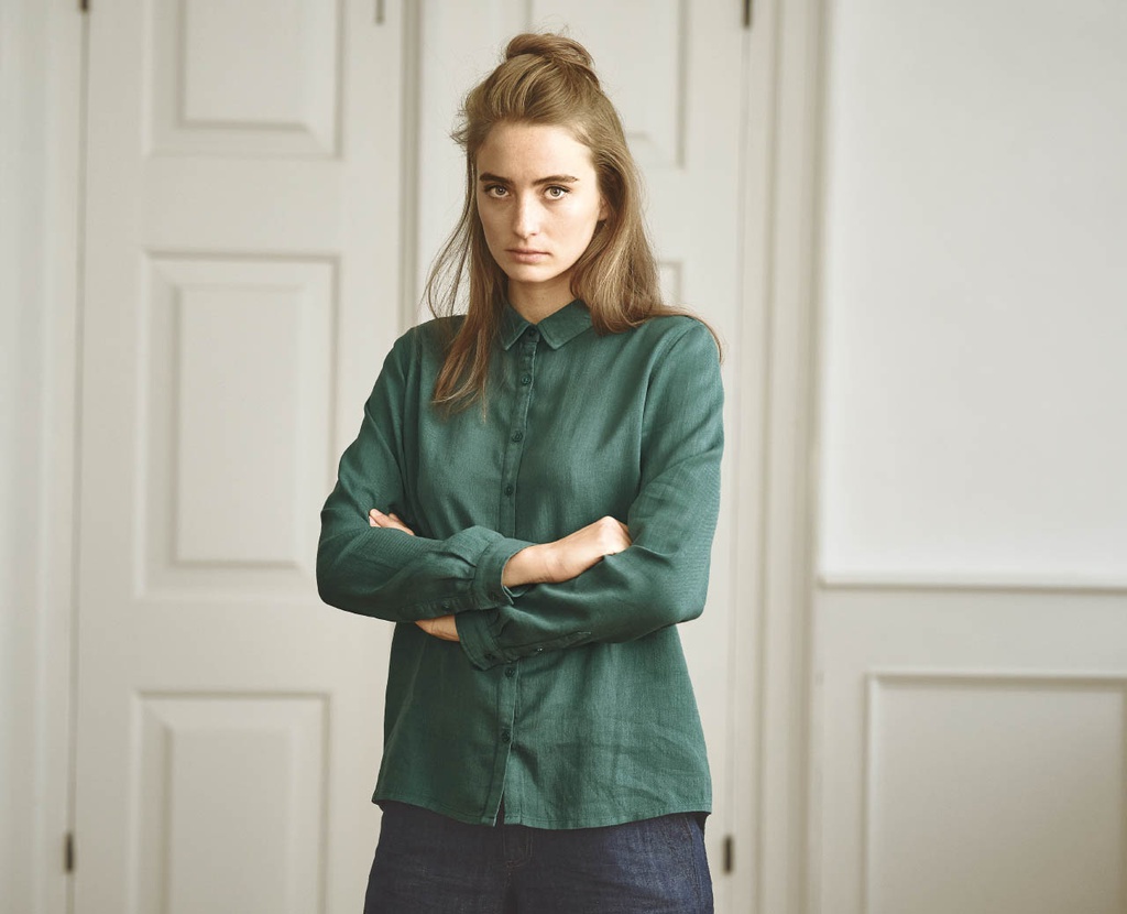 La classica camicetta a maniche lunghe in fibra di cotone biologico e canapa ecologica il talento a tutto tondo per la stagione fredda. Versatile, per tutte le varianti di stile, sei sempre ben vestita, in ufficio, nel tempo libero oa casa.