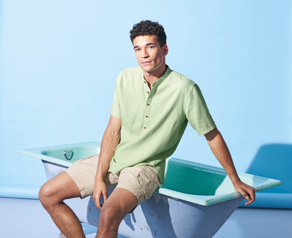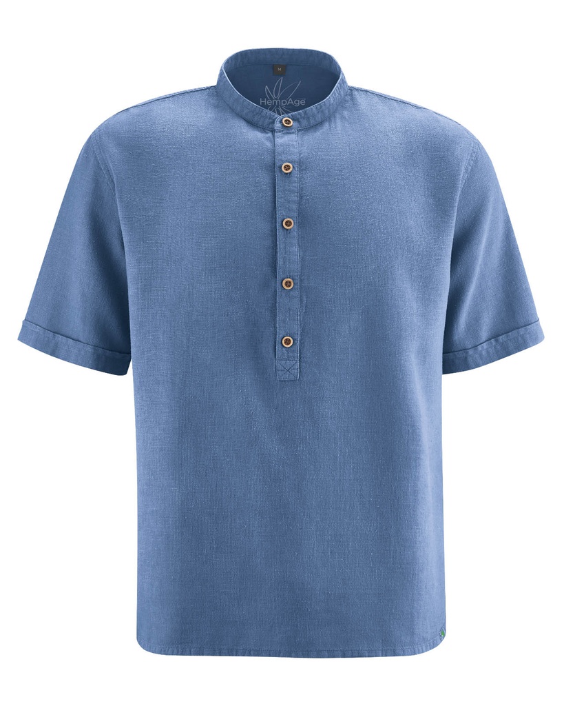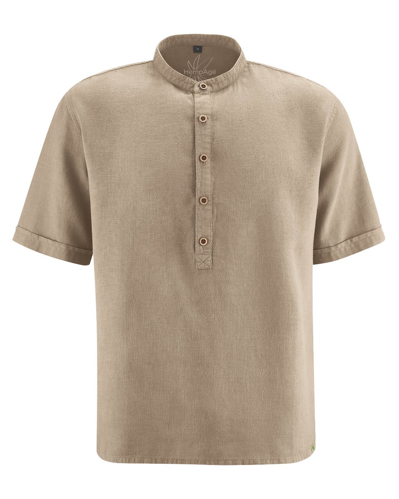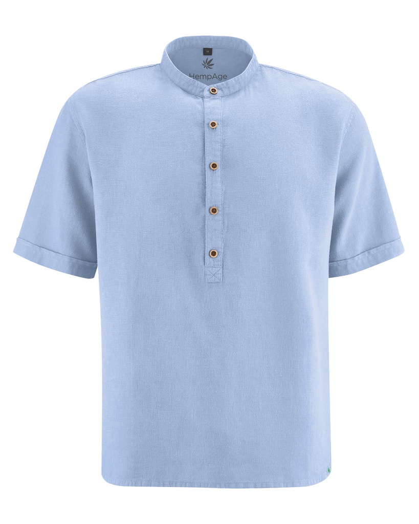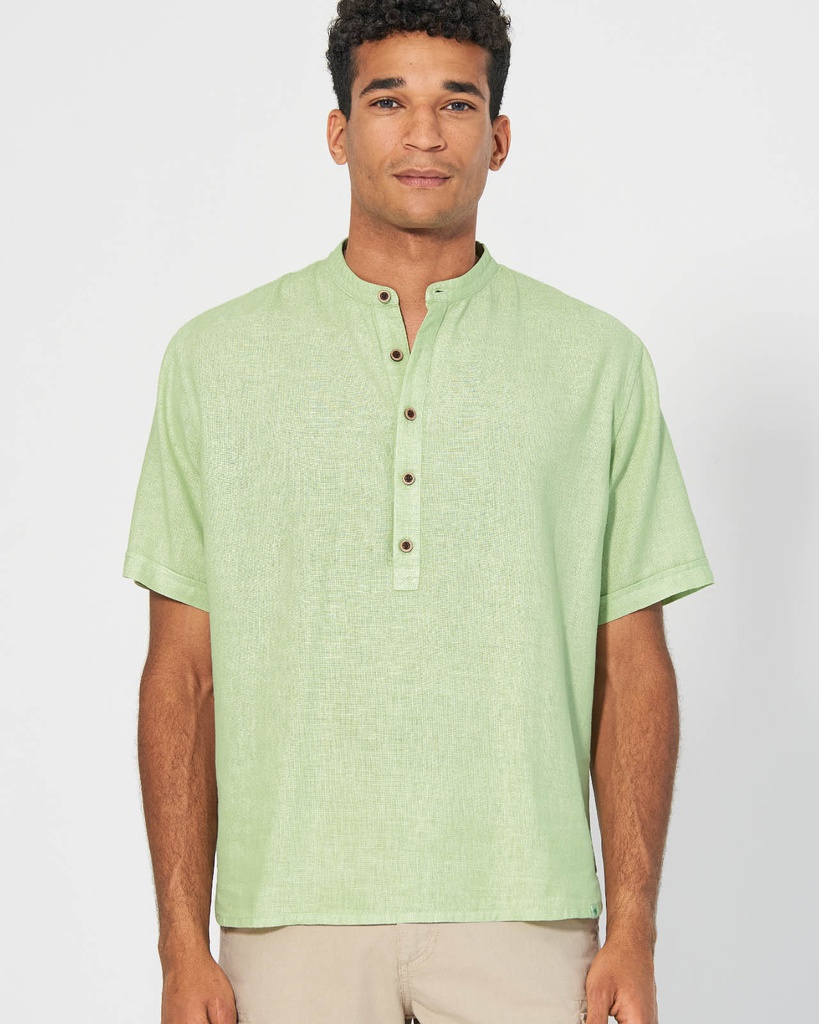 Colletto alla coreana, maniche corte, 5 bottoni.