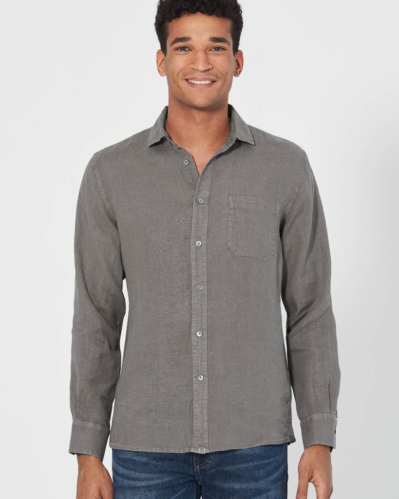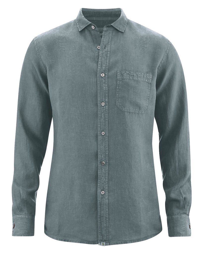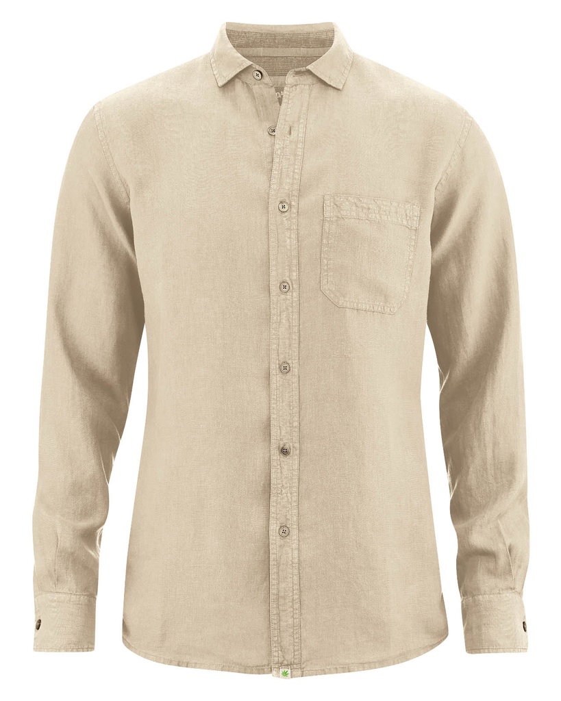 Camicia uomo maniche lunghe in pura canapa con taschino laterale, per il tempo libero e il lavoro, leggera e fresca in pura canapa. colletto piccolo senza bottoni, taglio normal fit,