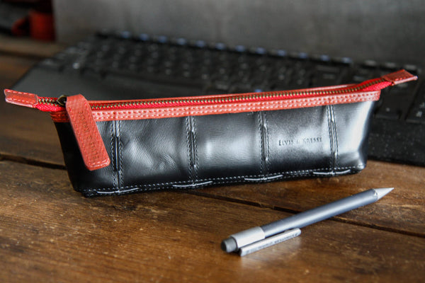 L'astuccio Elvis & Kresse è realizzato con una combinazione di vera manichetta antincendio dismessa e pelle Burberry recuperata, ed è foderato in seta paracadute recuperata. Ovunque tu vada e qualunque cosa tu stia creando, mantieni la tua cancelleria organizzata nel lusso recuperato.