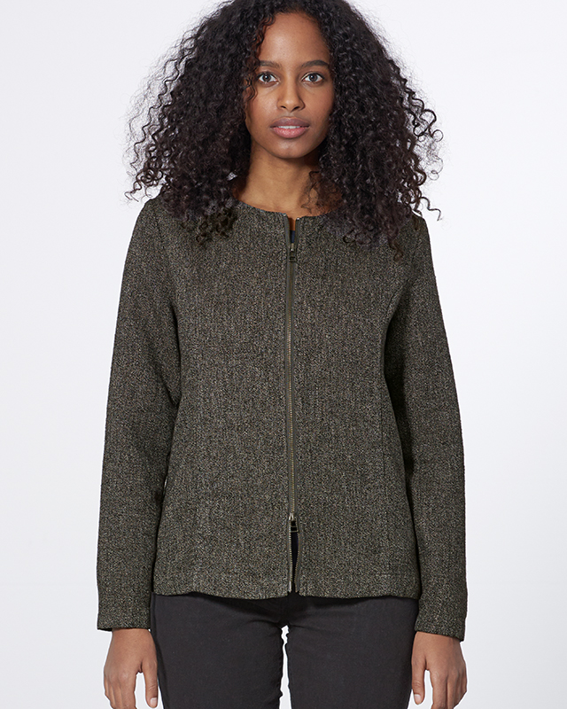 Taglio diritto, classico, melange, una giacca versatile da indossare casual o più classica con una gonna La cerniera a due vie offre libertà di movimento. La lavorazione skin-friendly di questo capo, permette di stare caldi e contemporaneamente morbidi e temprati sulla pelle, così da poterlo indossare anche da solo.