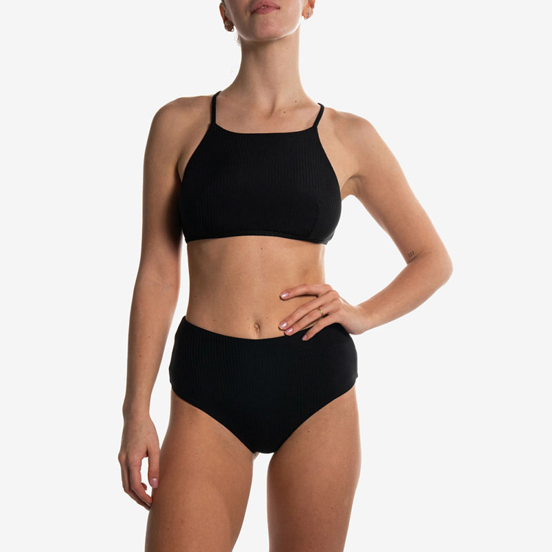 Halter Bra è prodotto utilizzando al 90% filo rigenerato ECONYL® che proviene da rifiuti di nylon come le reti da pesca e per il 10% Elastan. Il nylon rigenerato ECONYL® è un prodotto generato dai rifiuti ed è infinitamente riciclabile. Tale materiale permette processi di rigenerazione a circuito chiuso migliorando le caratteristiche di sostenibilità dei prodotti.