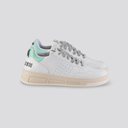 La versione Vegan White Water è caratterizzata dal tallone in bicolore acqua marina e bianco con logo Womsh ricamato.