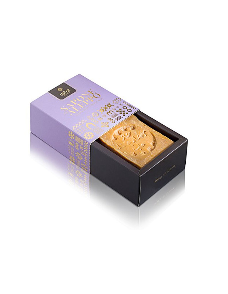 Realizzato artigianalmente ad Aleppo e stagionato naturalmente per minimo 12 mesi. Il 40% si riferisce alla massa totale degli oli saponificati.