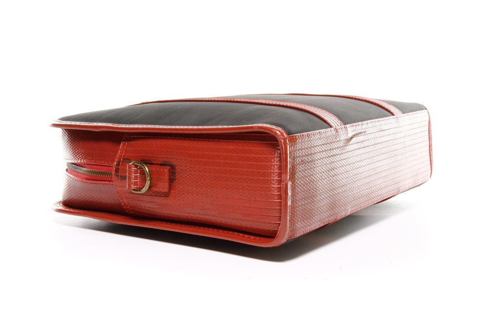 La Cartella Compatta è disponibile nella nostra esclusiva manichetta antincendio rossa, la più rara manichetta antincendio gialla e la versione Print Room, un'elegante combinazione della nostra inconfondibile manichetta antincendio e delle gomme per la stampa usate e scartate dalle tipografie così rigenerate, riprogettate per creare un effetto visivamente sbalorditivo materiale nero opaco resistente e belle al tatto.