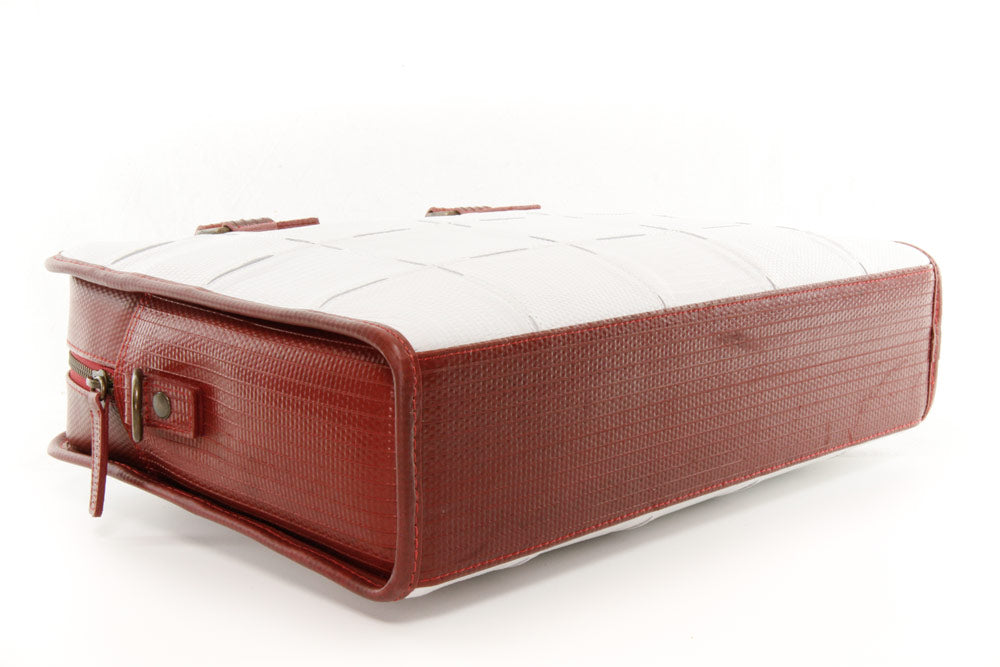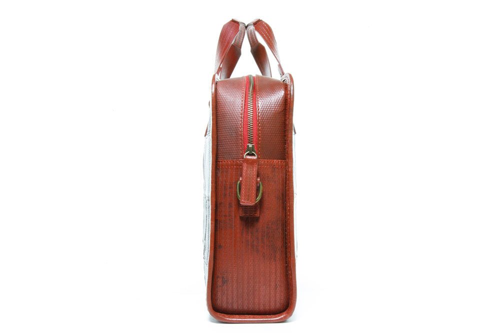 Nel triste mondo delle borse da lavoro anonime, la nostra valigetta compatta Fire & Hide ti offre la possibilità di distinguerti dalla massa. La combinazione di robusta manichetta antincendio e pelle Burberry recuperata intrecciata a mano è perfetta per i tuoi spostamenti quotidiani.