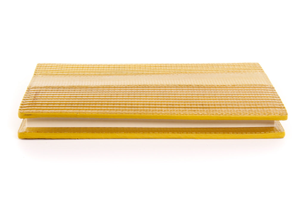 UpCycled materiali utilizzati: Manichette antincendio del regno unito dismesse e recuperate. il quaderno è in carta avorio grezza, il retro è rigido.