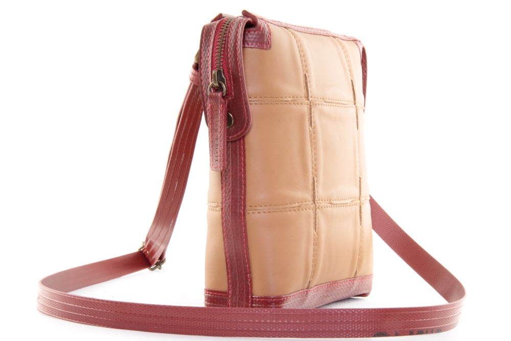Elvis&Kress - Upcycling 100%, È realizzato a mano da una combinazione di pelle "salvata" dei pellettieri britannici e dalle manichette antincendio della Gran Bretagna recuperate, diversamente destinate alle discariche, nascono le borse e gli accessori moda.
