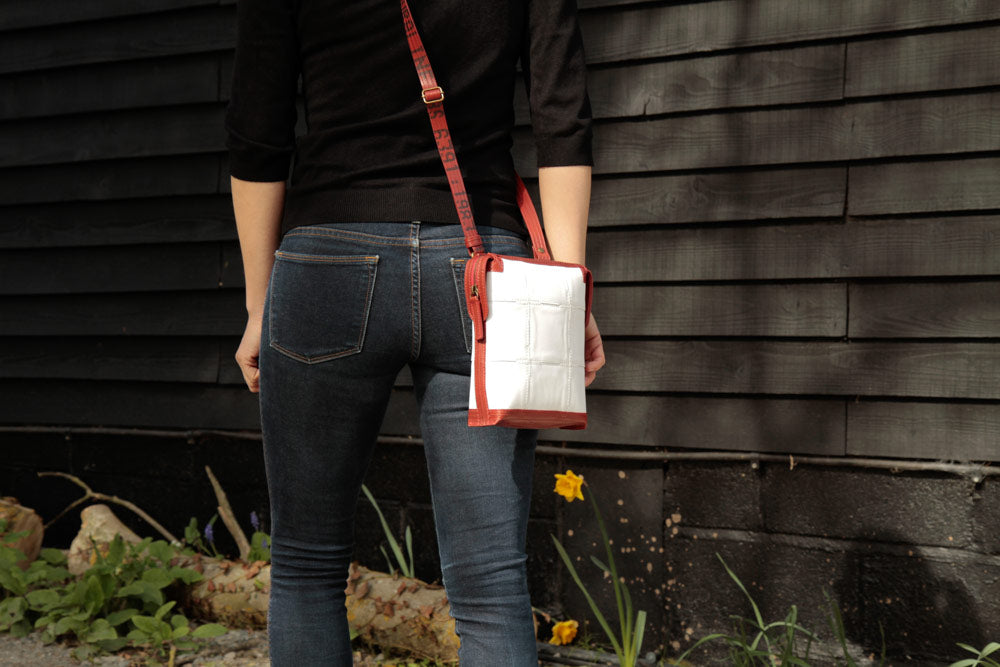 Elvis&Kress - Upcycling 100%, È realizzato a mano da una combinazione di pelle "salvata" dei pellettieri britannici e dalle manichette antincendio della Gran Bretagna recuperate, diversamente destinate alle discariche, nascono le borse e gli accessori moda.