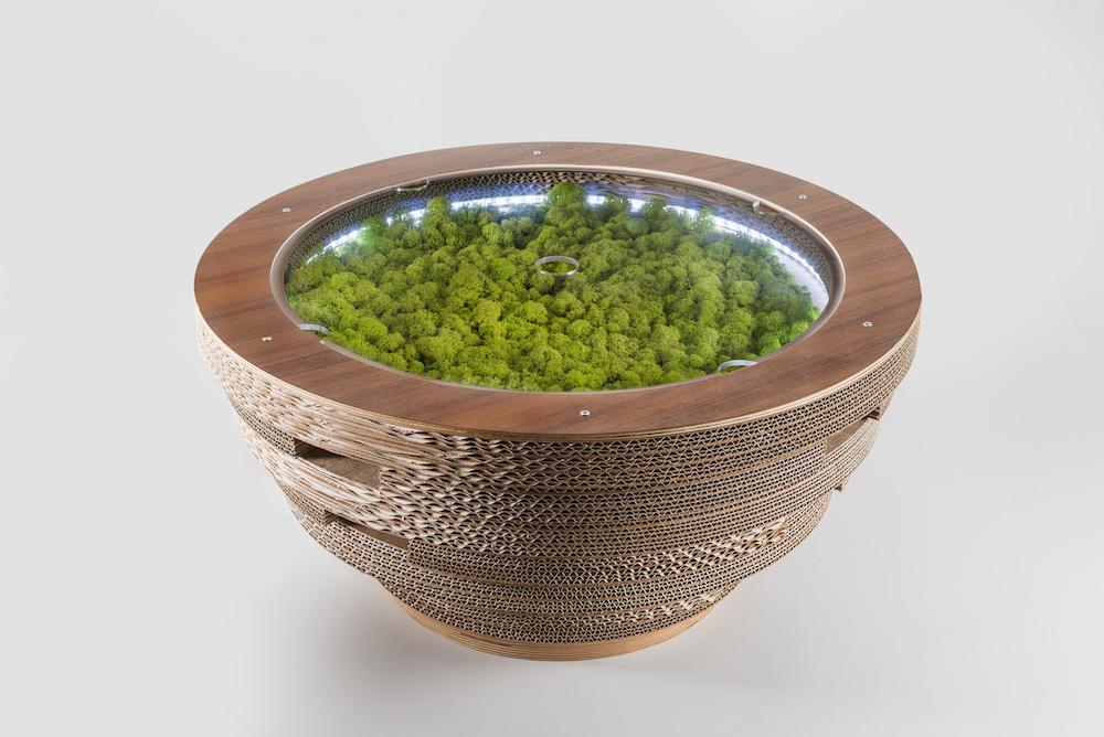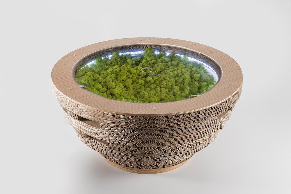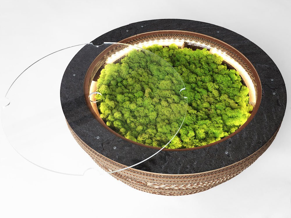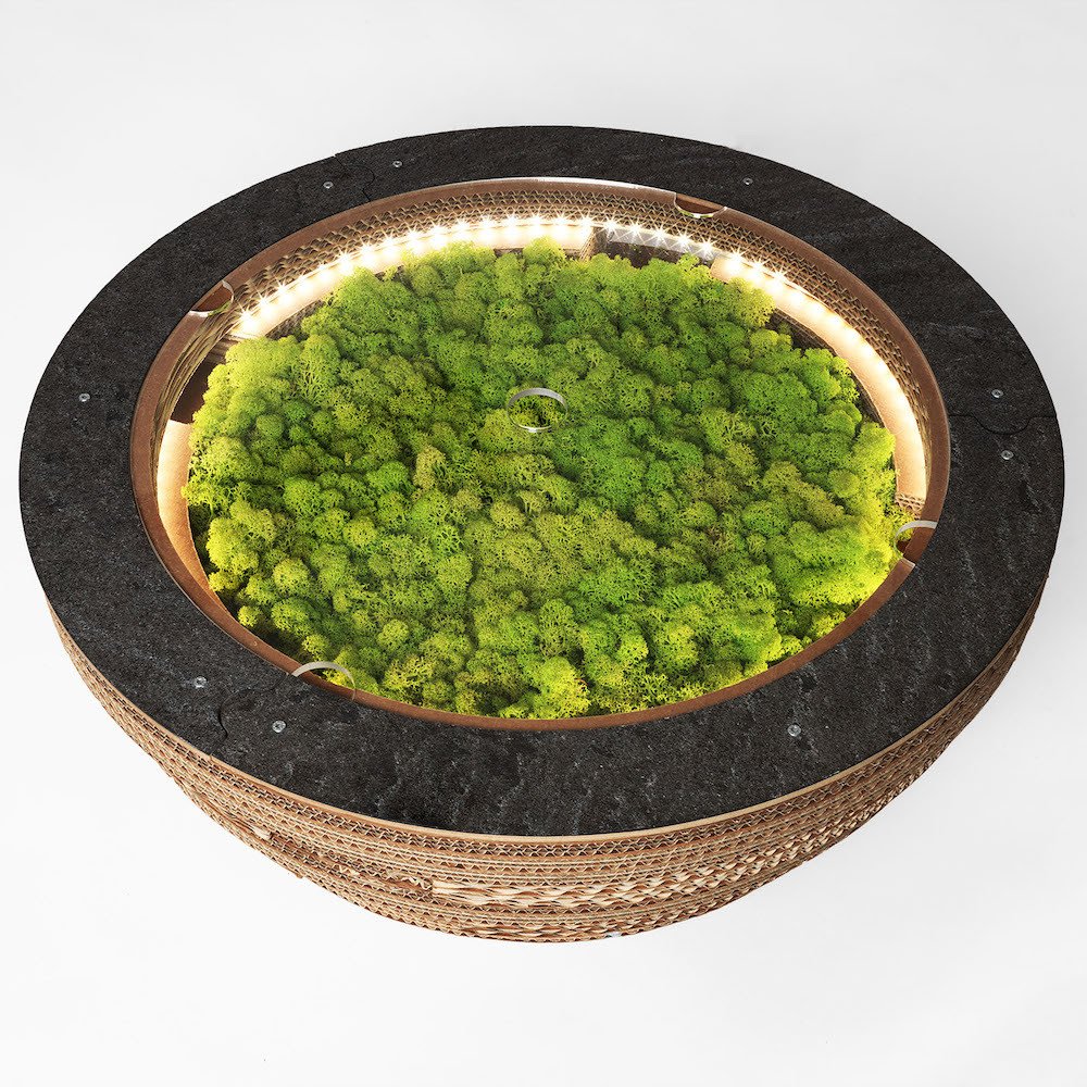 PREZZO SU RICHIESTA - Tavolino Lampada Tappo in cartone con licheni scandinavi veri