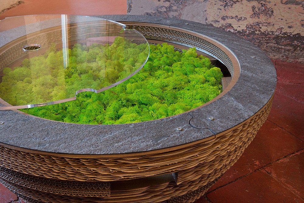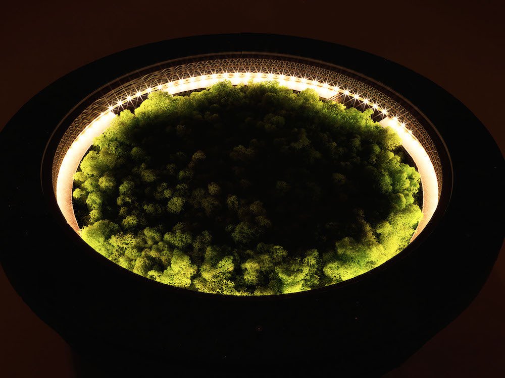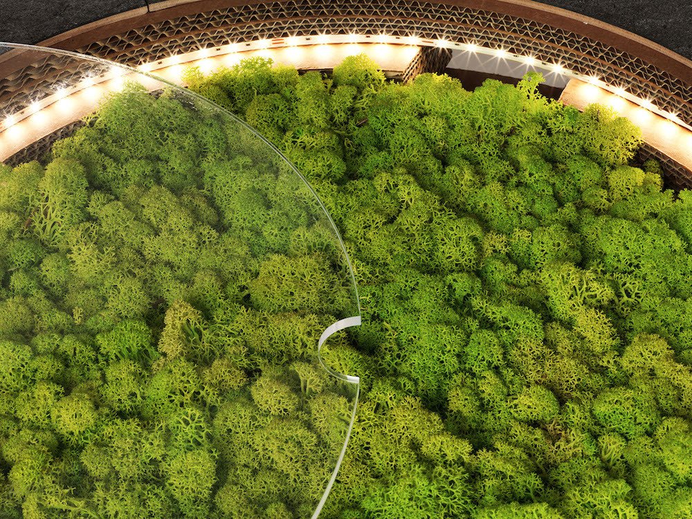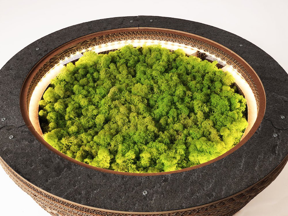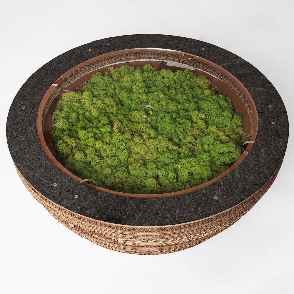 PREZZO SU RICHIESTA - Tavolino Lampada Tappo in cartone con licheni scandinavi veri
