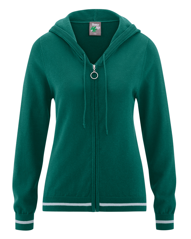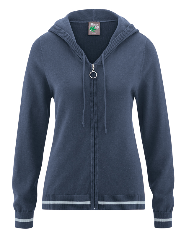 Maglia donna con cappuccio e zip, cotone biologico e canapa