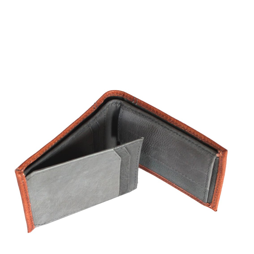 L'interno colpisce per la sua pelle conciata e tinta al vegetale. Il portafoglio produzione equa. Le dimensioni, la morbidezza tattile e il funzionamento interno, che dispongono tutto in modo chiaro.