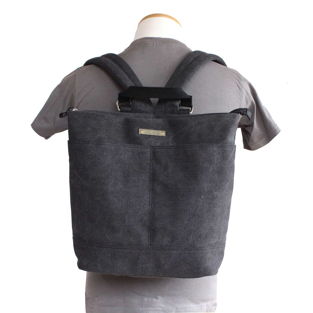 Non adatto per lavatrici (principalmente a causa della pelle e della cera sul tessuto di tela. Le chiusure metalliche possono anche danneggiare la lavatrice.)