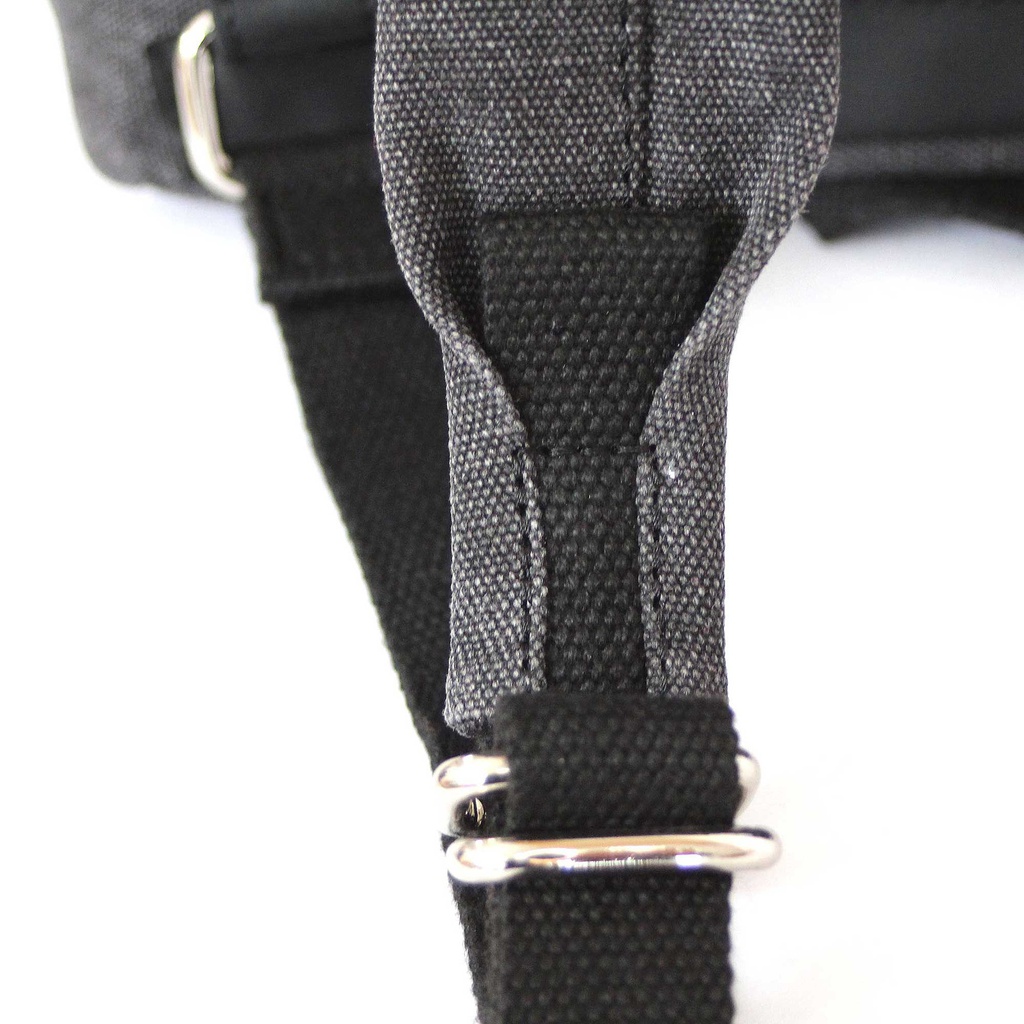 Facciamo deliberatamente un ulteriore passo avanti in questo settore. Abbiamo deciso di astenerci dall'utilizzare nylon e PVC nella collezione. Tra le altre cose, le cinture in nylon sono sostituite da cinghie di cotone, mentre gli elementi di fissaggio in PVC e regolatori di cinghia sono sotituite da elemnti in metallo.
