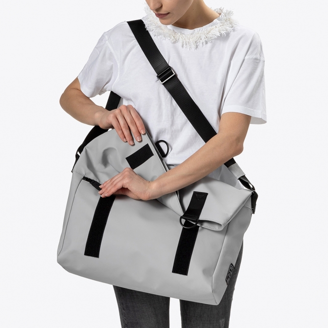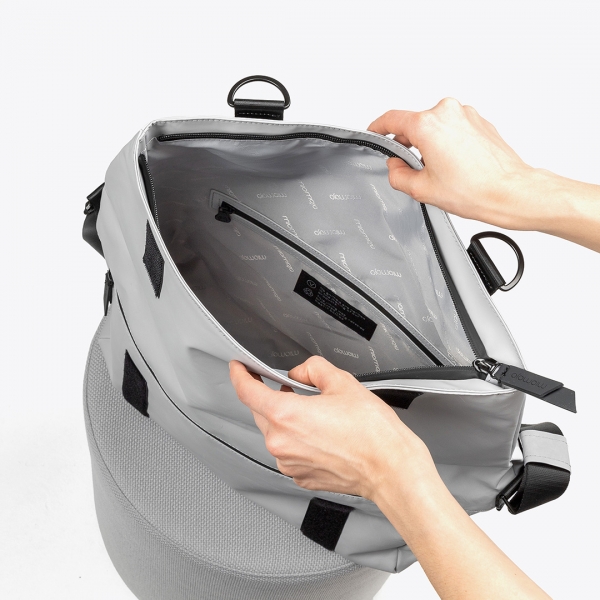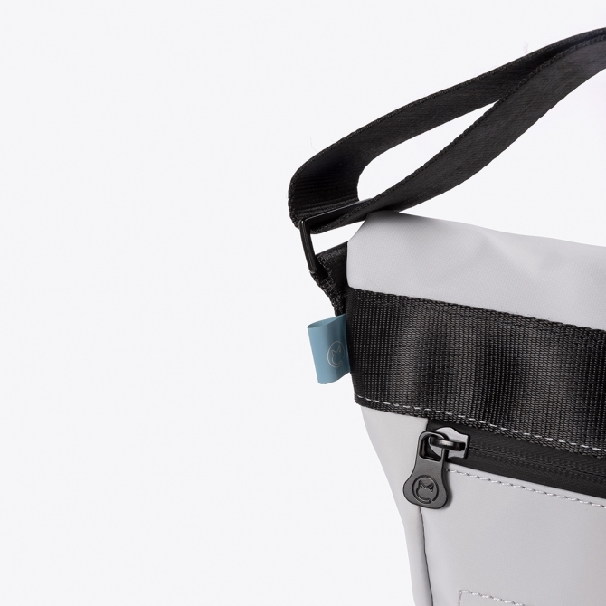 - Tessuto riciclato da bottiglie di plastica, con rivestimento impermeabile