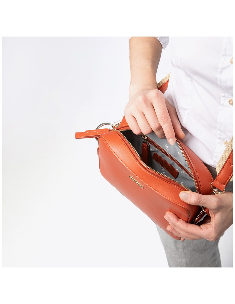 Dalila è la “camera bag” che offre spazio a sufficienza per contenere tutti i vostri effetti personali, ma allo stesso così piccola e maneggevole da poter essere portata ovunque. Dotata di uno scomparto principale con cerniera, due tasche interne ed una pratica tracolla removibile, questa borsa può essere indossata a spalla, a tracolla o portata semplicemente come una pochette.