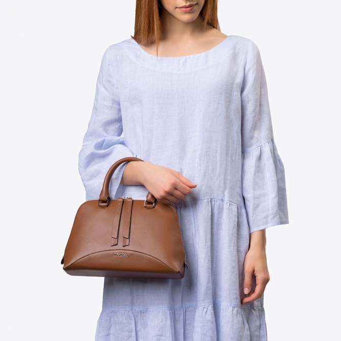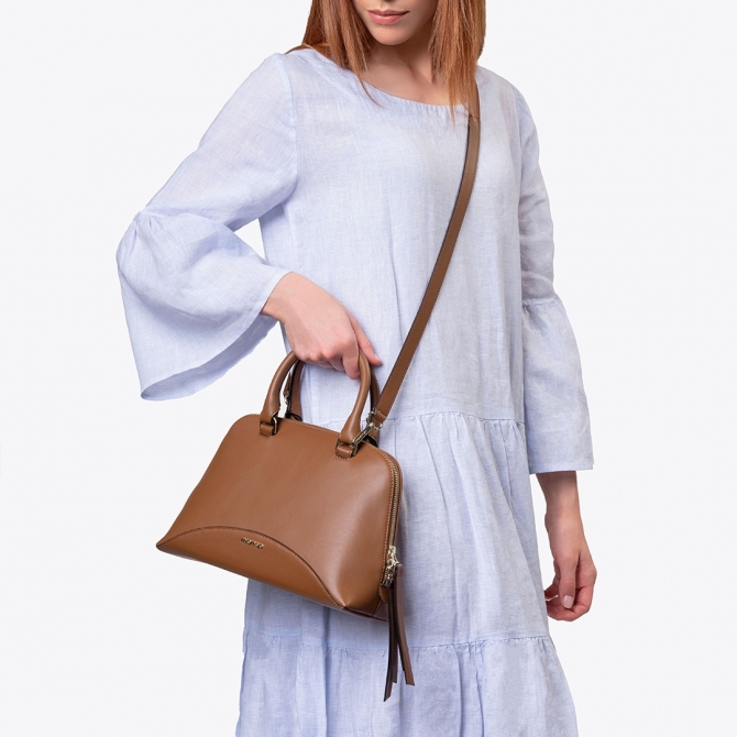 Con manici arrotondati ed una tracolla rimovibile, Isotta saprà accompagnarvi dalla mattina alla sera. I dettagli, in un elegante color oro chiaro, rifiniscono la silhouette.