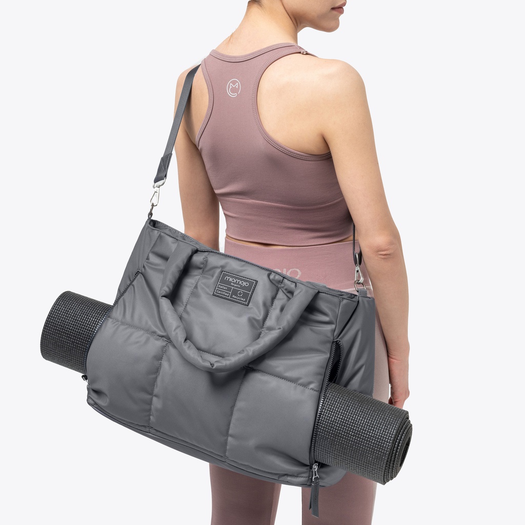 La nuova borsa da yoga Melissa celebra il mantra di Miomojo: un design gentile con il tuo corpo e gentile con il pianeta. Comoda e ultraleggera, questa borsa è realizzata in elegante tessuto imbottito, riciclato da bottiglie di plastica. Melissa è spaziosa e perfetta per portare in palestra tutti ciò che serve durante la lezione di yoga: le due pratiche cerniere esterne, una volta aperte, creano una tasca perfetta per poter portare con voi anche il vostro tappetino personale.