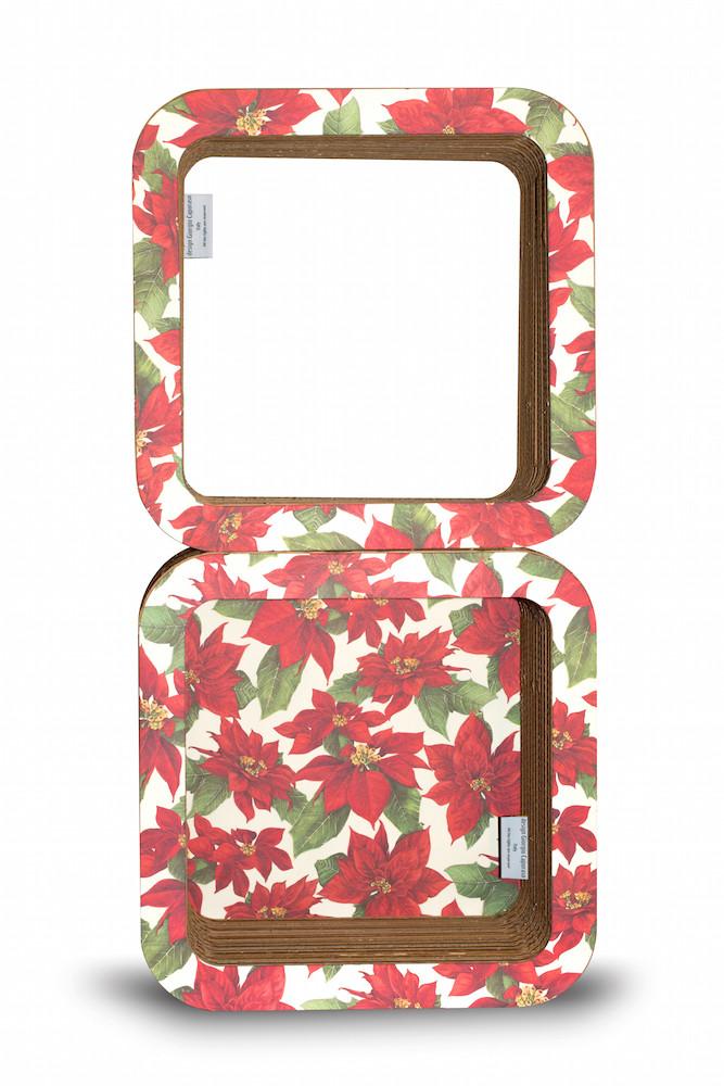 Materiali: 1 corpo in cartone con cornici Stampa Floreale Stella di natale. Disponibile con fondale o senza fondale. Dimensioni: 45x45x32cm (LxHxP)