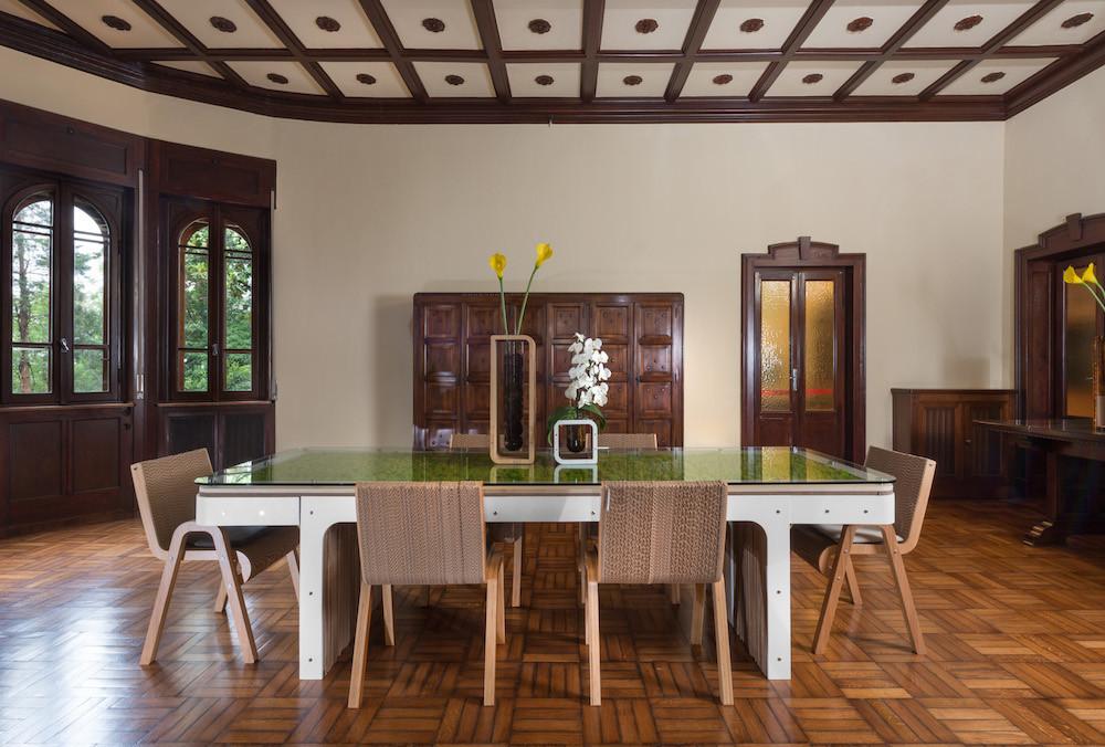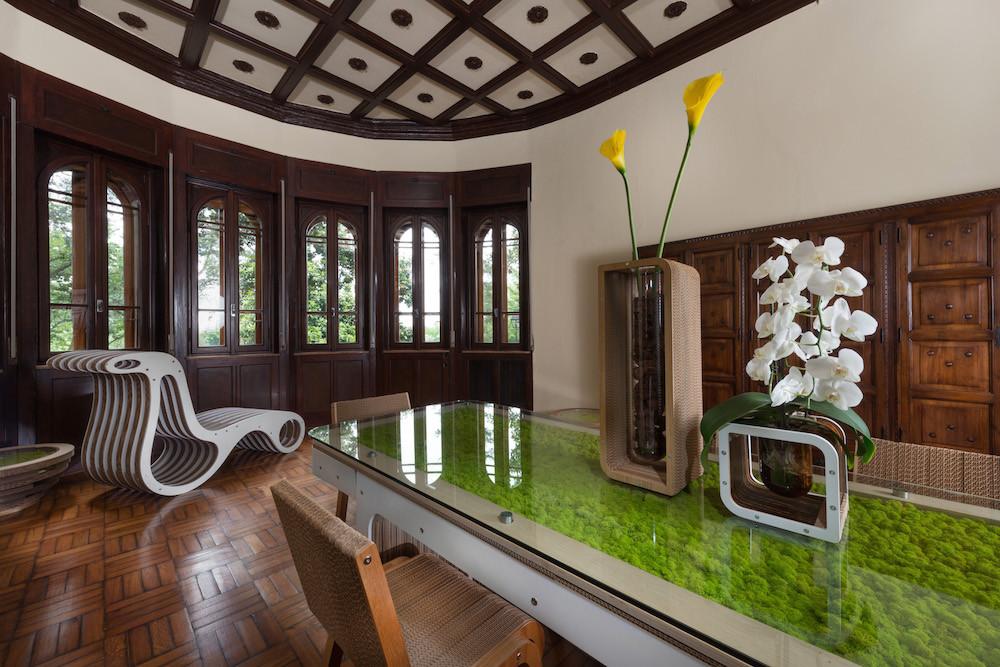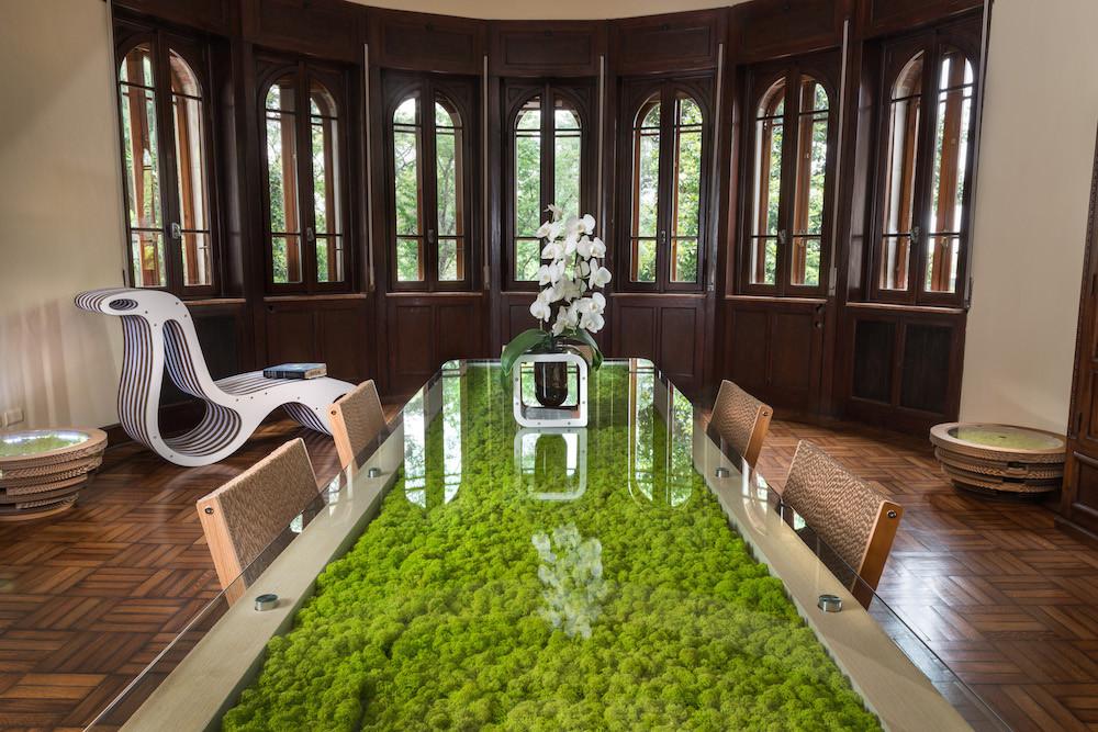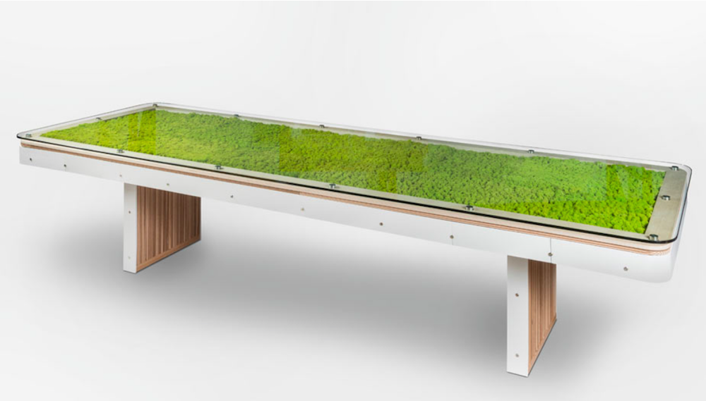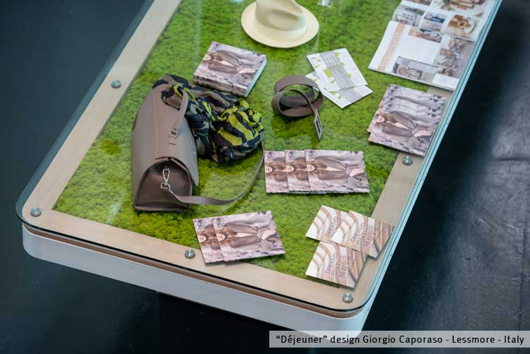 Tavolo Design in cartone, legno FSC, vetro, licheni.