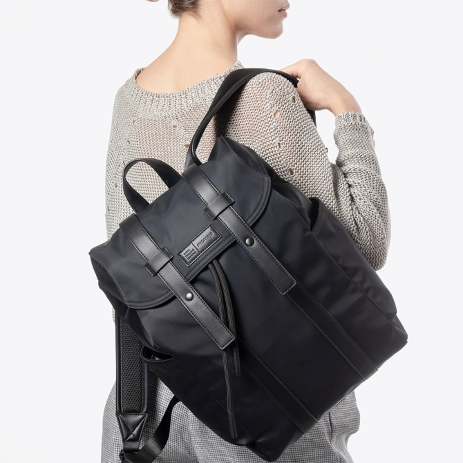 Realizzato pensando alla donna e all'uomo contemporanei, questo zaino dal design minimalista, total black, elegante e funzionale, è realizzato con particolare attenzione ai dettagli. Ideale per i consumatori consapevoli ed amanti del design