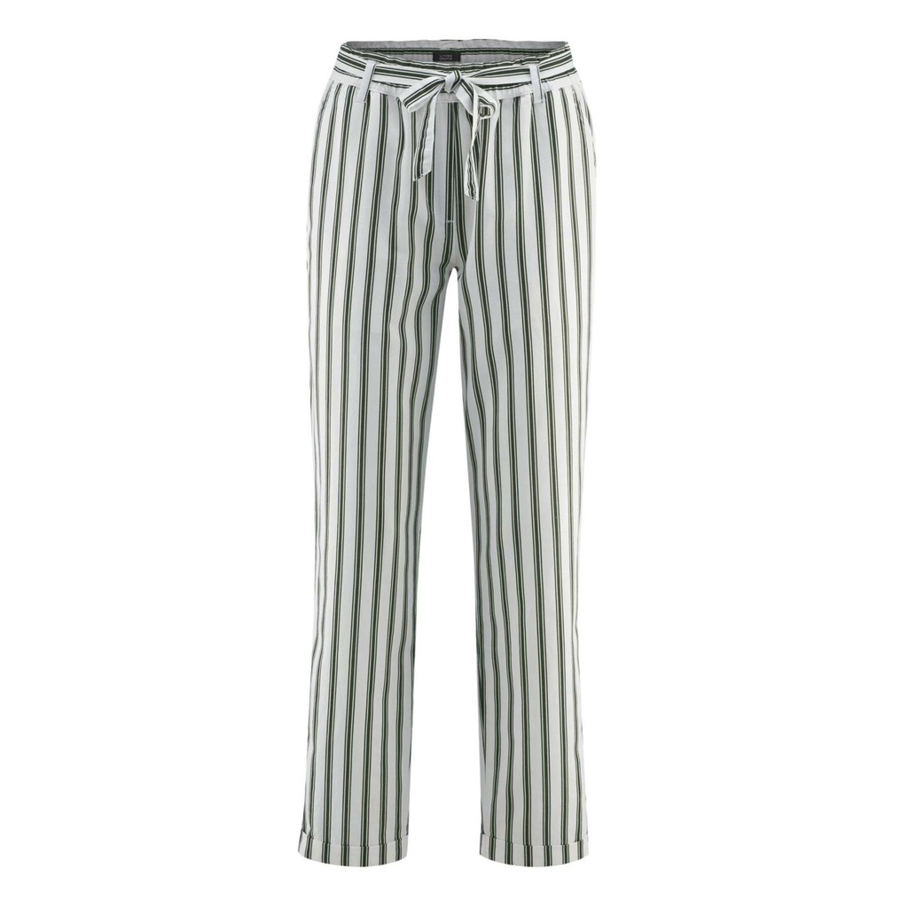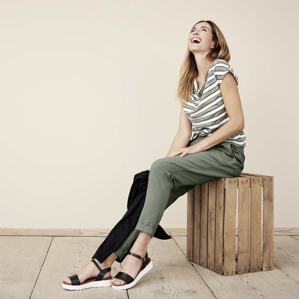 Pantaloni sostenibili e giusti con cintura in tessuto rimovibile dal regno della moda bio al femminile.