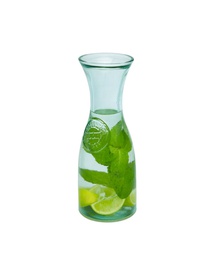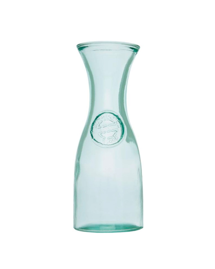 Caraffa di vetro riciclato da 800 ml ottenuta da 1,5 bottiglie di vetro. Il vetro riciclato viene prodotto utilizzando meno energia, materie prime e additivi rispetto a quanto richiesto per la produzione di vetro tradizionale.
