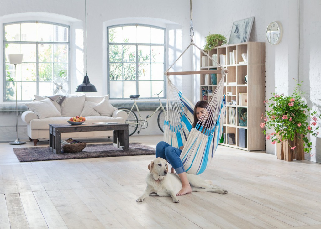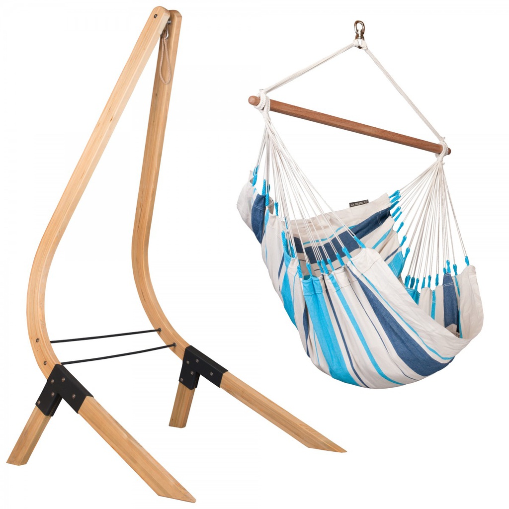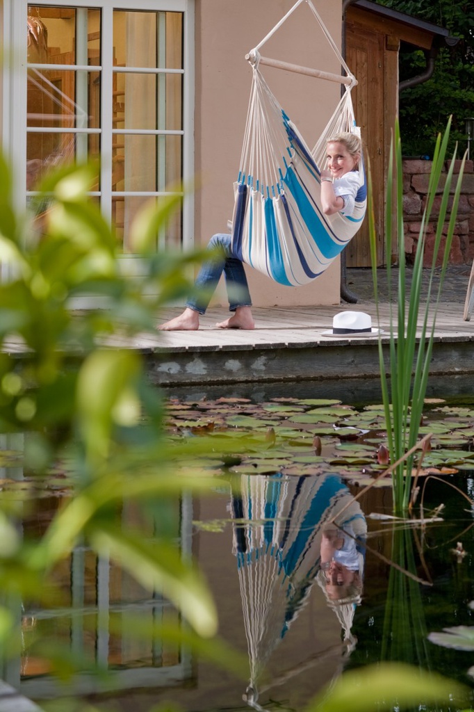 La sedia pensile basic Caribeña Aqua Blue con il suo rinfrescante design a strisce, offre tanta comodità in poco spazio, per un pizzico di Caraibi nella vostra casa.