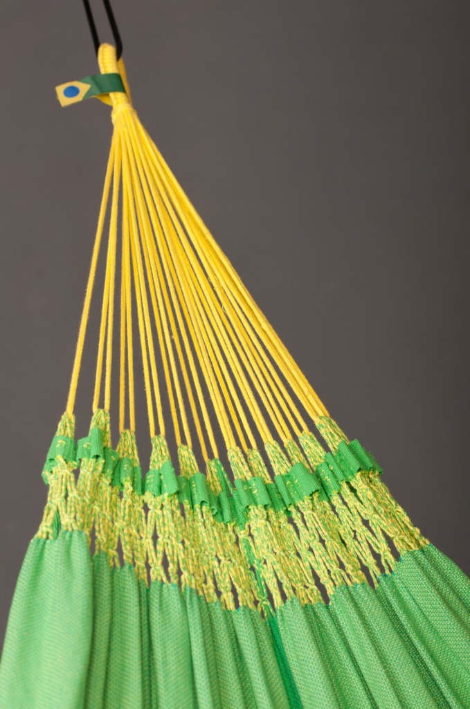 Grazie alla sua tecnica di tessitura diagonale e al tessuto stretch, questa amaca si adatta perfettamente al vostro corpo. Peculiarità delle amache brasiliane sono le artistiche bordature ornamentali, il sottotessuto macramè e le innumerevoli corde di sospensione; queste caratteristiche garantiscono un'ottimale ripartizione del peso corporeo, offrendo un'eccezionale confortevolezza.
