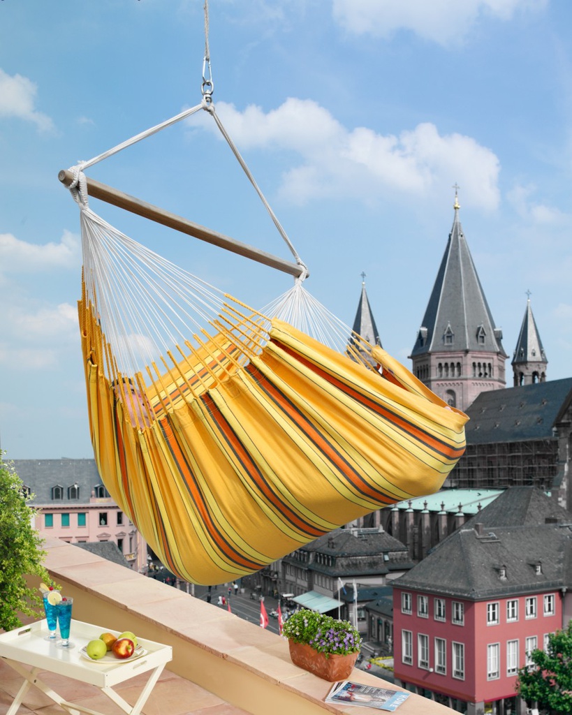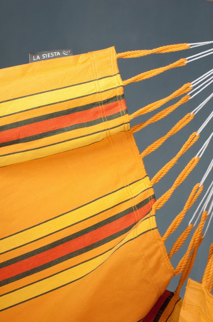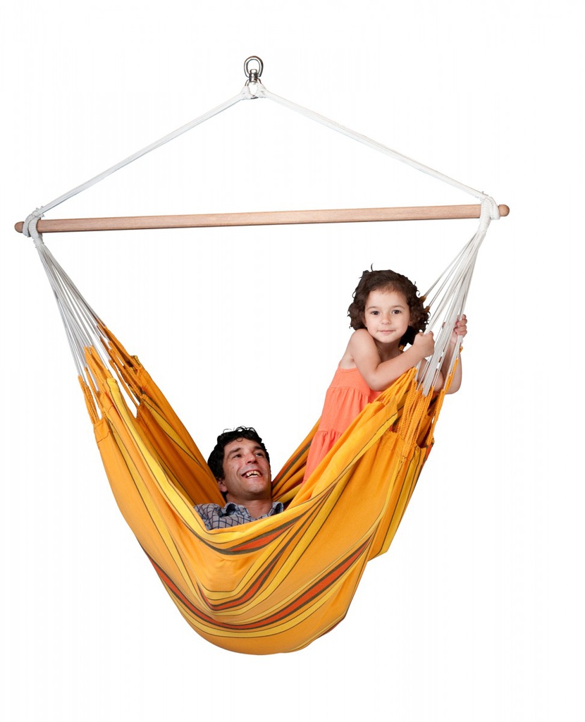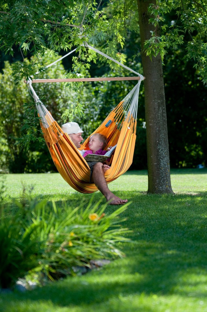 Tipico per le nostre sedie pensili colombiane: le numerose corde di sospensione assicurano un'ottimale ripartizione del peso, ciò garantisce un elevato confort, comodità e lunga durata. I bordi rinforzati le rendono particolarmente resistenti agli strappi. Il gancio girevole integrato garantisce una rotazione sul proprio asse in piena sicurezza.