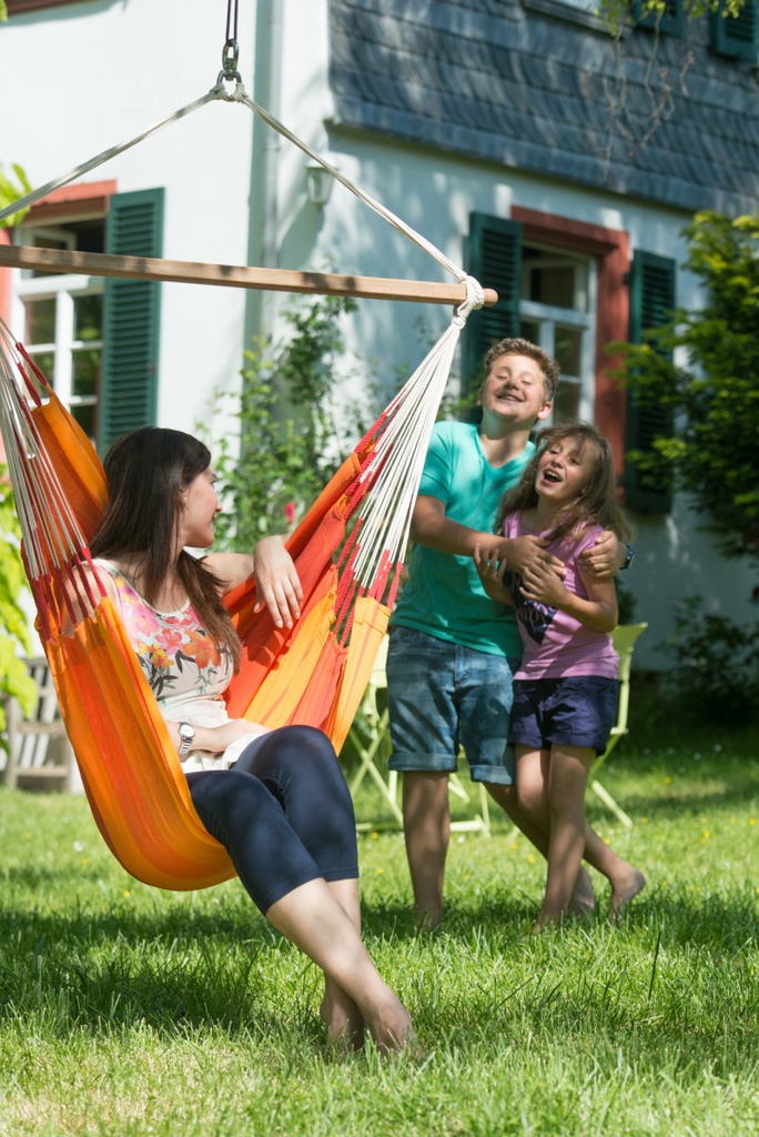 LA SIESTA garantisce più sicurezza e comodità. Questo sistema rende possibile girare sul proprio asse senza che le funi di sospensione si torcano.