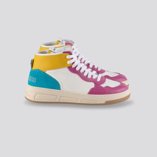 la sneaker eco-friendly alta richiama lo stile del basket e del mondo vintage, pensata per adattarsi a qualsiasi look. La versione White Kelly presenta Dettagli: dai colori accesi e logo Womsh ricamato per uno stile eccentrico. L’altezza della suola è di 3 cm.