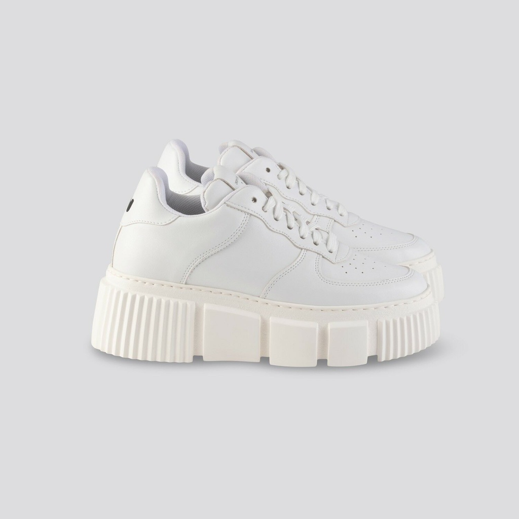 Bianca è la sneaker vegana sviluppata in collaborazione con Drop Studio. Rappresenta la perfetta sintesi di calzatura fashion che entra nel mondo street. La tomaia richiama il mondo retrò del basket, mentre la suola massiccia ricorda le scarpe anni ’90. L’altezza della suola è di 7 cm.