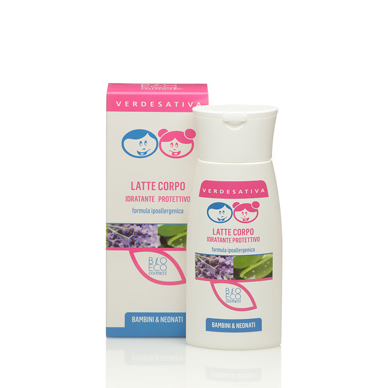 Lozione adatta per la cura quotidiana della pelle sensibile dei bambini e come emulsione idratante e protettiva post-bagnetto e come doposole.