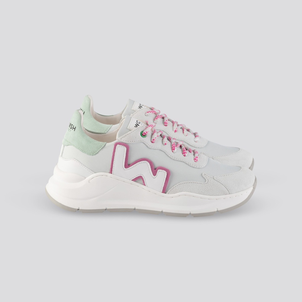 La versione Grey Water è caratterizzata da un mix di tonalità sobrie della tomaia e del tallone e i profili accesi del logo Womsh.